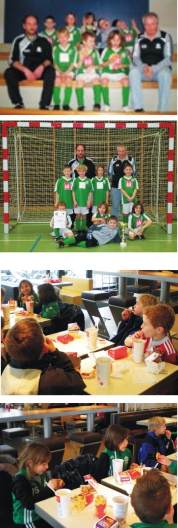 U16 gewinnt Hallenturnier in Stey: Großer Erfolg für unsere U16 Spielgemeischaft - ohne Gegentor gewinnen die Jungs das Turnier in Steyr. Die Ergebnisse: Bewegung Steyr - SKW/Vorchorf 0:1, Viktoria Marchtrenk - SKW/Vorchdorf 0:2, SV Urfahr - SKW/Vorchdorf 0:5 und Sattledt - SKW/Vorchdorf 0:5. Im Finale wurde Bad Hall mit 3:0 aus der Halle gefegt. Als erstes ging es sofort zum Mannschaft-Sponsor McDonalds in Vorchdorf - der Pokal steht bereits im Lokal und als Belohnung gab es für jeden Kicker in Menü! [Bild vergrößern] |