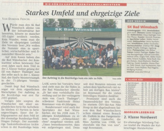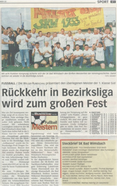| Saisonrückblick Bezirksliga Süd 2005/06 - SK Bad Wimsbach