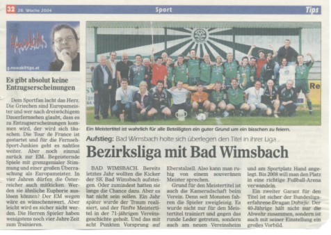 | Veranstaltungen So. 18.04.04 Heimspiel SKW 1933 - Vorchdorf mit Autogrammstunde Niki Hosp und Spatenstich Kabinenprojekt Sa. 19.06.04 - Saison 2003/04 - Abschlussfeier auf der Sportanlage Sa. 16.06.04 - Bericht 13. Wimsbacher Kleinfeldfussballturnier |