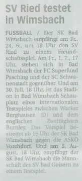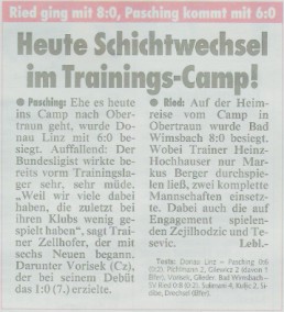 Ried spielt zum Abschluss ihres Trainingslagers in Obertraun gegen