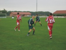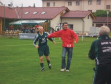 geschrieben – 1:0 Sieg Volksfeststimmung im SKW-Stadion – ab 10 Uhr vormittags war Tag der offenen Tür für alle Fans, sämtliche Räume waren geöffnet und der SKW zeigte seiner Bevölkerung, was in den letzten 73 Wochen alles geschehen ist – zahlreiche Besucher interessierten sich stark für die neuen SKW-Räume die in 8800 Arbeitsstunden errichtet wurden. Nebenbei ein tolles Rahmenprogramm mit einem Riesen-Wuzzler-Turnier, das die Trachtenmusikkapelle Bad Wimsbach gegen die Wimsbacher Volleyballer mit 5 : 3 im Finale für sich entschied. Jetzt zum Spiel – die Wimsbacher Mannschaft kam rund um den Trubel des Tages nur schwer ins Match – vorerst dominierte Frankenburg die Partie. Die Wimsbacher konnten in den ersten Minuten ihre Hausaufgaben nicht richtig erledigen – Frankenburg kam zu zwei tollen Möglichkeiten in der Anfangsphase. Nach einer Viertelstunde fingen sich die Heimischen und spielten endlich Fußball – Hannes Starl scheiterte in der 17. Minute nach Vorarbeit von Roland Austaller – 1 Minute später wollte Mathias Habring mit der Hand ein Tor erzielen – Gelbe Karte. 23. Minute – Dubajic rettet die Wimsbacher vor einem Verlusttreffer, als er den Ball von der Linie kratzt – im Gegenzug scheitert Stefan Hochreiter nach einem Schuß aufs kurze Eck – der Frankenburger Goalie pariert. Dann waren bis zur Pause die Wimsbacher am Drücker – belohnt wurden sie aber erst in der 44. Minute – Roland Austaller kann sich auf der rechten Seite durchsetzen, flankt zur Mitte und Mathias Habring ist zur Stelle – 1:0 zum Pausentee. Nach der Pause hat Frankenburg gleich eine Riesenchance auf den Ausgleich – der Ball geht aber knapp daneben – es sollte allerdings auch die letzte Tormöglichkeit bleiben, weil die Wimsbacher keine Chance, der ambitioniert spielenden Frankenburger, mehr zuließen. Folglich gab es für den SKW eine Vielzahl von Konterchancen, aus denen das eine oder andere Tor hätte entstehen müssen. Slava Markovic, Hannes Starl, Mathias Habring scheitern, Roland Austaller knallt den Ball in der 83. Minute an die Stange – kurz vor Schluss verfehlt ein Stanglpass den völlig alleine stehenden Jürgen Feth. Aufgrund der zweiten Halbzeit ein verdienter Sieg der Wimsbacher, die an diesem Tag jedoch nicht in gewohnter Manier zur Sache gingen – vielleicht war der Trubel an diesem Tag einfach zu viel, was soll´s – 3 Punkte – auch solche Spiele muß man erst gewinnen. Herzlichen Dank an die Sponsoren der neuen TR-Anzüge Firma Elektro Steiner, Firma Hager Luftanlagenbau und DM Rechtsanwälte – diese wurden an diesem so erfreulichen und sonnigen Tag an die Wimsbacher Kicker und Funktionäre übergeben. 05.09.05 - SH |