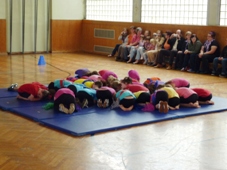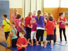 Schulturnstunde“ nach dem Unterricht eingeführt. Vor über 70 Zuschauern führten die Kinder ihr Gelerntes vor und dies wunderbar eingepackt in eine musikalisch unterstützte Show. Die Kinder turnten zu „We are the Champions“ zum „Fußball-WM-Song“ und zu einigen weiteren Klassikern. Zum Abschluss gab´s für die Besucher Blumen von den Kindern und für die alle Kinder gab´s ein Eis. Ein großes Kompliment an alle Bambinis und besonders ihrer Trainerin Alexandra Türk – weiter so. |