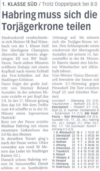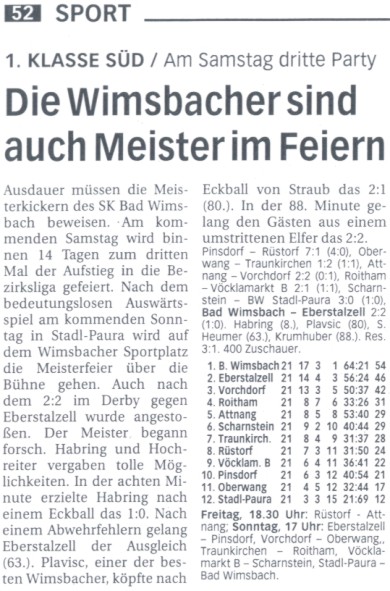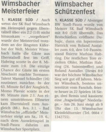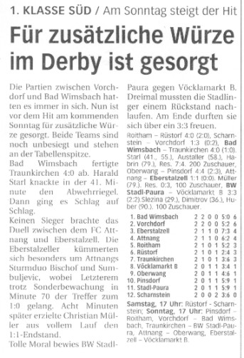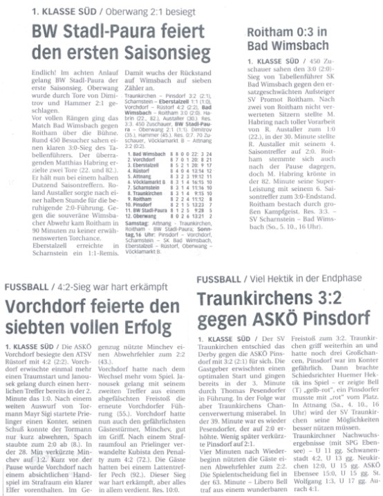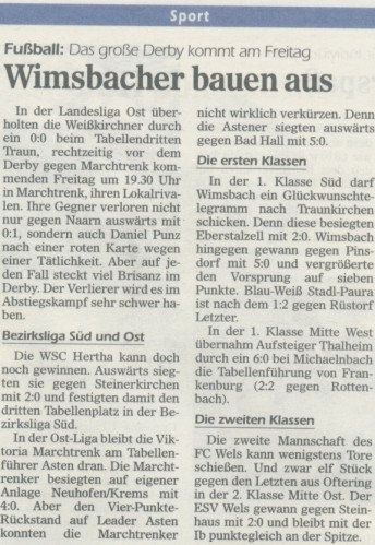 Runde 06 - Berichte aller Zeitungen Wimsbachs
