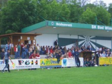 Spielbericht: Ein toller Tag für die herausragenden Wimsbacher vor 650 Zuschauern !! Nicht nur ein tolles Fußballspiel wurde den zahlreichen Zuschauern geboten, auch beim Rahmenprogramm trumpfte der SK Bad Wimsbach groß auf. Mit dem Stargast, der mehrfachen Ski-Weltcupsiegerin Niki Hosp und zahlreicher Wimsbacher Prominenz wurde vor Spielbeginn für das große Wimsbacher Kabinenprojekt der Fußballer der Spatenstich durchgeführt – anschließend erfüllte Niki Hosp noch eine Stunde lang sämtliche Autogramm- und Fotowünsche ihrer Fans. Jetzt zum Spiel: Vorchdorf wechselte noch während der Woche vor dem großen Derby den Trainer – Spielertrainer ist jetzt Jaroslav Konvalina. Wimsbach begann furios – von Beginn an drückte der SKW wehement aufs Tempo und wurde bereits in der 5. Minute nach Stanglpaß von Plavsic durch Matthias Habring´s 1 : 0 dafür belohnt. In dieser Tonart gings weiter – 19. Minute: weiter Paß auf Habring, der erwischt vor dem Vorchdorfer Schlussmann den Ball und überhebt diesen von 20 Metern ins Tor – 2 : 0 (Traumtor). Von Vorchdorf war in der ersten Halbzeit nichts zu sehen – lediglich einen Freistoß ganz am Anfang musste Wimsbach´s Schlussmann Baumgartinger aus dem 16er boxen. Auch nach der Pause ging´s munter weiter – 3 : 0 durch Plavsic nach schönem Doppelpaß in der 59. Minute. In der 64. Minute dann Elfmeter für Bad Wimsbach (Habring wurde im 16er gelegt) – Helmut Ohler tritt an und vergeigt den Elfer, aber Hannes Starl ist im Nachschuß erfolgreich – 4 : 0. 10 Minuten später der Ehrentreffer für Vorchdorf – ein Freistoß von rechts geht durch Freund und Feind – 4 : 1. Wimsbach hätte Vorchdorf an diesem Tag „abschießen“ können – 4 100%ige Torchancen wurden von den Wimsbachern in der Schlussphase noch vergeben, jedoch war man in Wimsbach mit diesem 4 : 1 Derbysieg hochzufrieden und ist aufgrund des 1 : 1 von Eberstalzell nun wieder 4 Punkte voran. Schiedsrichter: Kitzmüller (sehr gut), E. Zauner, Neuböck Zuschauer: 650 |