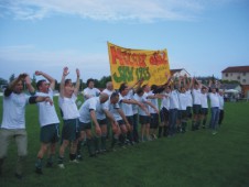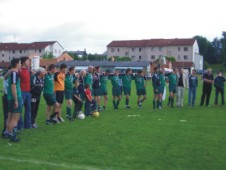 | Spielbericht: Ein hartes Derby vor der zweiten MEISTERFEIER Der Meister aus Bad Wimsbach begann forsch – sofort wurde das Eberstalzeller Gehäuse unter Beschuss genommen – Habring und Hochreiter vergaben gleich in den ersten Minuten zwei tolle Möglichkeiten. In der 8. Minute war´s gleich soweit – Habring erzielt nach einem Eckball das 1 : 0 für den Meister. Wimsbach spielte gut und hatte weitere Chancen auf das 2 : 0 – die größte durch Roland Austaller, der alleine vor dem Eberstalzeller Goalie vergab. Eine Riesentat vom 16-jährigen Goalie des Meisters, Manuel Schindler, der in der 30. Minute ein sicher scheinendes Tor der Gäste abwehrte – dies war die einzige Chance der Zeller in der 1. Halbzeit. Nach der Halbzeit kam Eberstalzell etwas auf und erzielte nach einem Abwehrfehlern der Wimsbacher aus einem Konter das 1 : 1 – 63. Min. Dann war wieder der Meister dran – Wimsbach wollte den Sieg, und Momo Plavsic, wieder einer der Besten, erzielte nach Eckball von Straub mit einem Traum-Kopfball wuchtig das 2 : 1 in der 80. Minute. Dies sollte der sichere Sieg sein – doch in der 88. Minute passierte folgendes: ein Eberstalzeller startete aus sehr abseitsverdächtiger Position, lief von der rechten Seite Richtung Sechzehner, René Riedl stand vor ihm, plötzlich fiel der Stürmer mit einer klaren Schwalbe um und der sehr gute Schiedsrichter Stöbich pfiff zur Verwunderung von 400 Zuschauern Elfer – 2 : 2 in der 88. Minute – ein unnötiges Tor zum Ausgleich. Was soll´s – der SKW ist Meister – anschließend gab´s die große Meisterfeier mit der Überreichung der Meisterschaftsmedaillen durch Gruppen-Obmann Hans Kronberger. Ausgelassen feierten nicht nur Trainer und Spieler sondern auch viele viele Fans an der längsten Käferbar der Welt. Das letzte Saisonspiel des Meisters am Samstag, 19.06.2004 um 17:00 Uhr in Stadl-Paura – anschließend die Meister- u. Abschlussfeier am Sportplatz in Bad Wimsbach. Schiedsrichter: Stöbich Zuschauer: 400 |