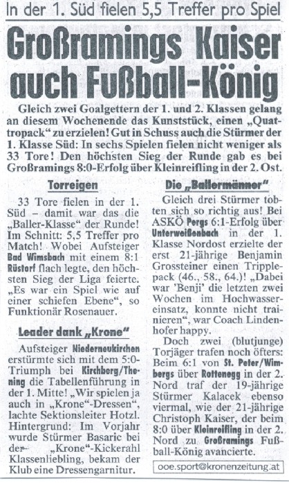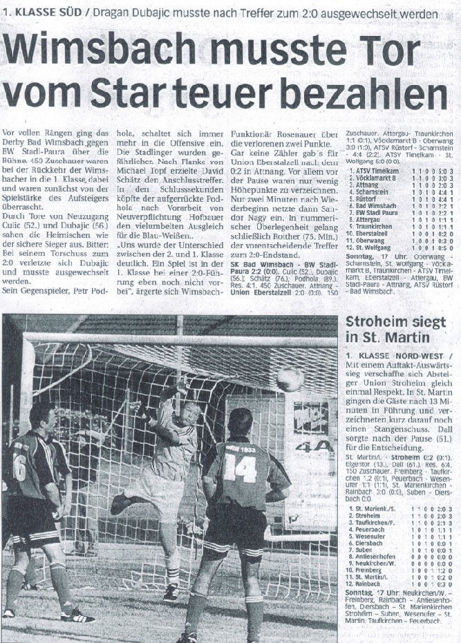 Welser Rundschau, 21.08.02 - Wimsbach musste Tor vom Star teuer bezahlen
