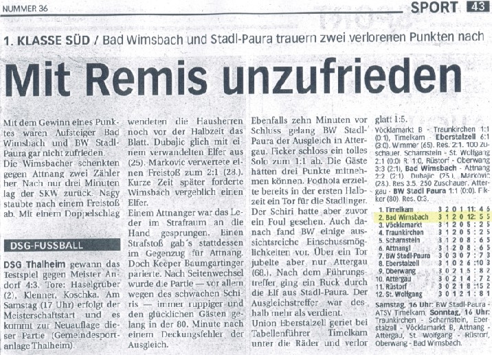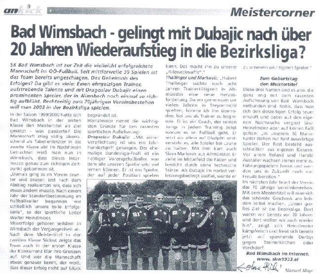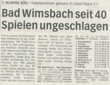 09.04.03 - Bad Wimsbach seit 40 Spielen ungeschlagen