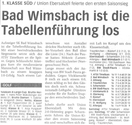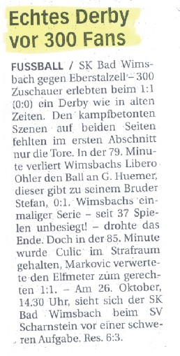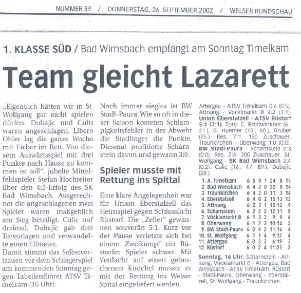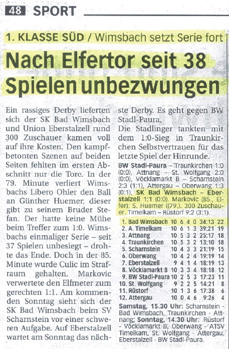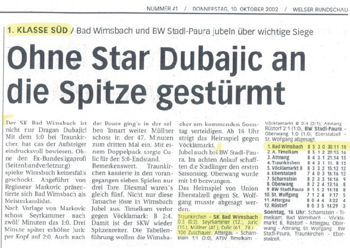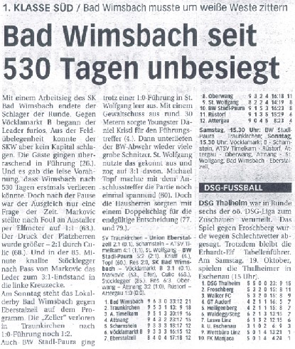 16.10.02 - Bad Wimsbach seit 530 Tagen unbesiegt