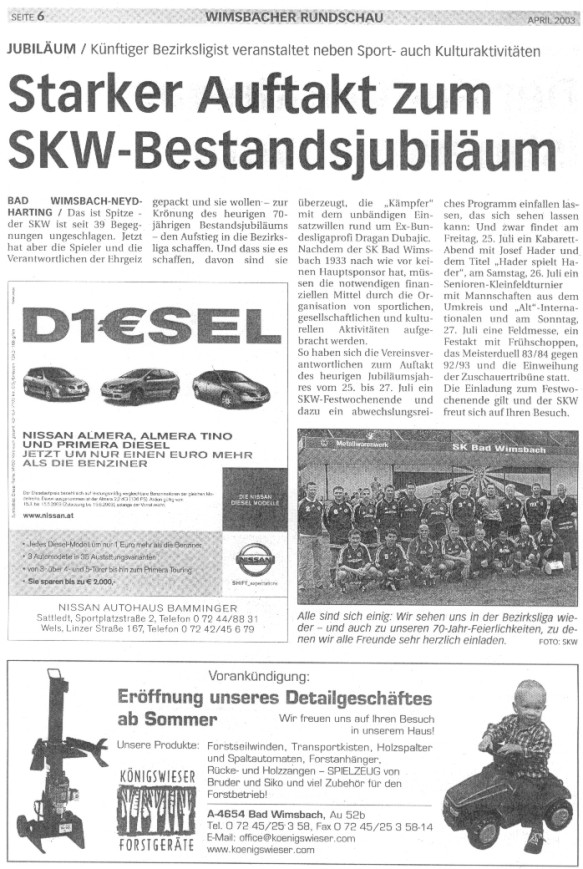 Rundschau der Welser Rundschau, April 2003 - Starker Auftakt zum SKW-Bestandjubiläum