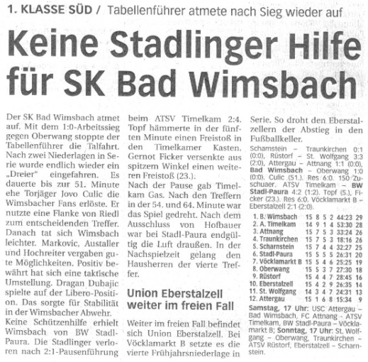 30.04.03 - Keine Stadlinger Hilfe für SK Bad Wimsbach