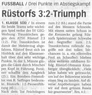 Rundschau, 07.05.03 - Rüstorfs 3:2 Triumph