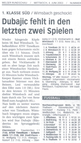 07.05.03 - Bad Wimsbach ist die Tabellenführung los