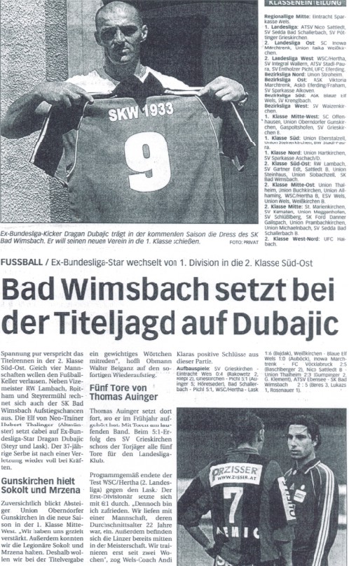 Welser Rundschau - Bad Wimsbach setzt bei der Titeljagd auf Dubajic