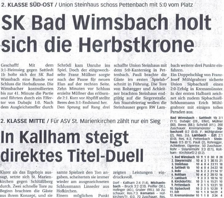 Rundschau - SK Bad Wimsbach holt sich die Herbstkrone